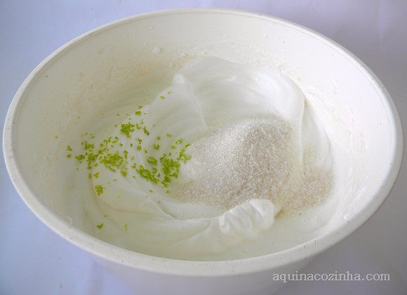 Bata as claras em neve (eu uso a batedeira), quando estiverem firmes vá acrescentando o açúcar aos poucos e depois as raspas de limão. Despeje essa mistura na forma caramelizada. Coloque a forma com o pudim, dentro de uma outra com água quente e umas gotinhas de vinagre ou uma rodela de limão (para não escurecer a forma). Leve as duas formas ao forno médio preaquecido por mais ou menos 40 minutos. Enfie uma faca, se ela sair limpa o pudim já está assado. Deixe esfriar para desenformar. Passe uma faquinha com muito cuidado dos lados e vá soltando, depois é só virar em um prato.